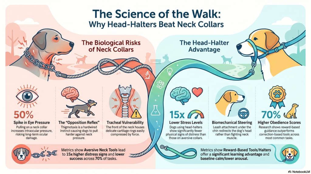 - 0% Advantage: Out of 17 major studies, zero found that aversive neck-based tools taught dogs faster or more effectively than reward-based tools.